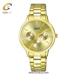 ساعت مچی اورجینال زنانه کیو اند کیو Q&Q سه موتوره فول تایم طلایی | طلایی| طلایی| کد رفرنس A04A-004PY